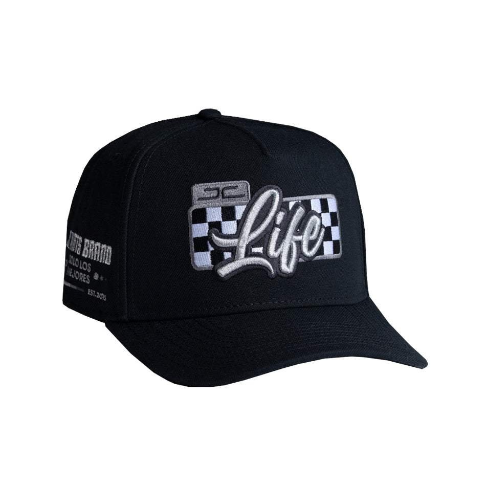 AV is a cap collection in collaboration with Edición Especial. This project is based on the artist Arturo Villa, inspired by one of his songs, "EL AV," which tells the story of a man who, despite adversity, manages to forge his own path in search of a better life.