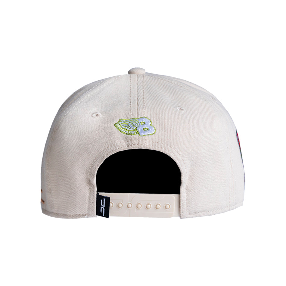 El Tsurito is a collection of two caps in collaboration with Gabito Ballesteros. This project is based on the song "El Tsurito¨, which narrates a confrontation between two factions and tells how they rode in a Tsurito and were shot with candy bullets. Therefore, these elements were chosen as the main elements for the design of this collaboration.